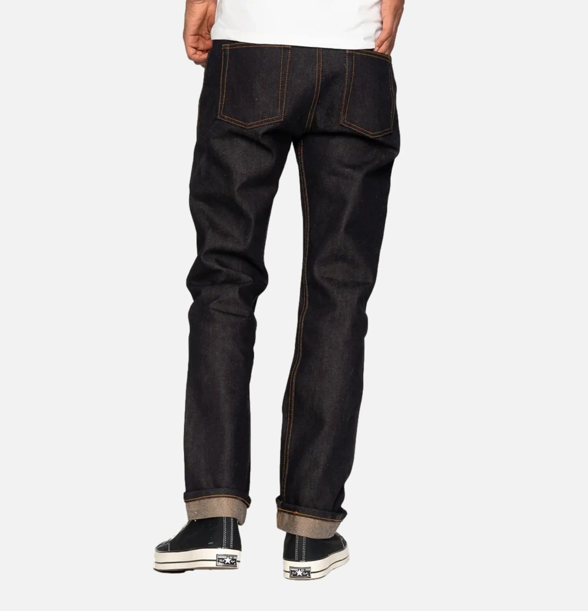- Denim : Japonais Selvedge 15oz, teinté à la corde avec indigo, trame en coton organique Foxfibre® de couleur naturelle