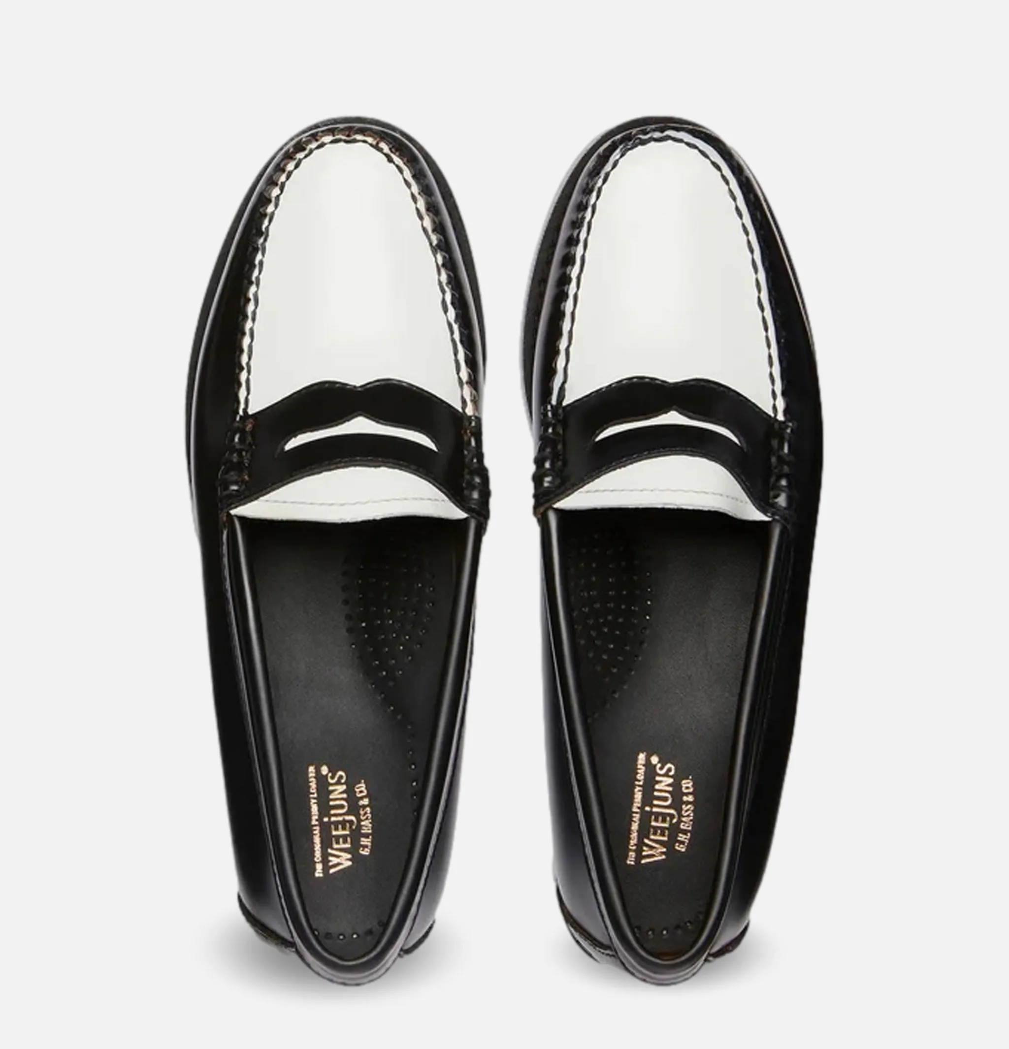 - Mocassins originaux en cuir poli noir et blanc